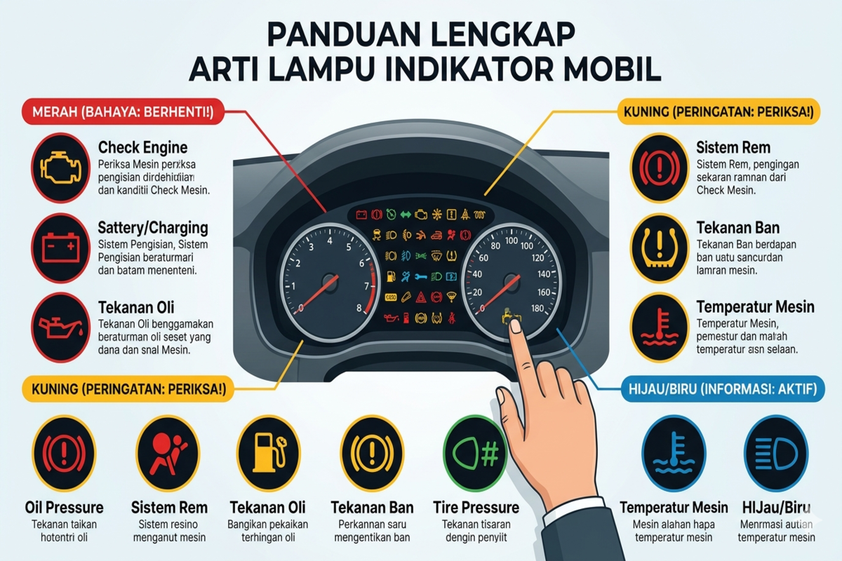 Jika lampu indikator menyala, jangan langsung panik atau mengabaikannya. Perhatikan warna, simbol, dan kondisi kendaraan. Dengan sikap yang tepat, perjalanan bisa tetap aman dan nyaman.