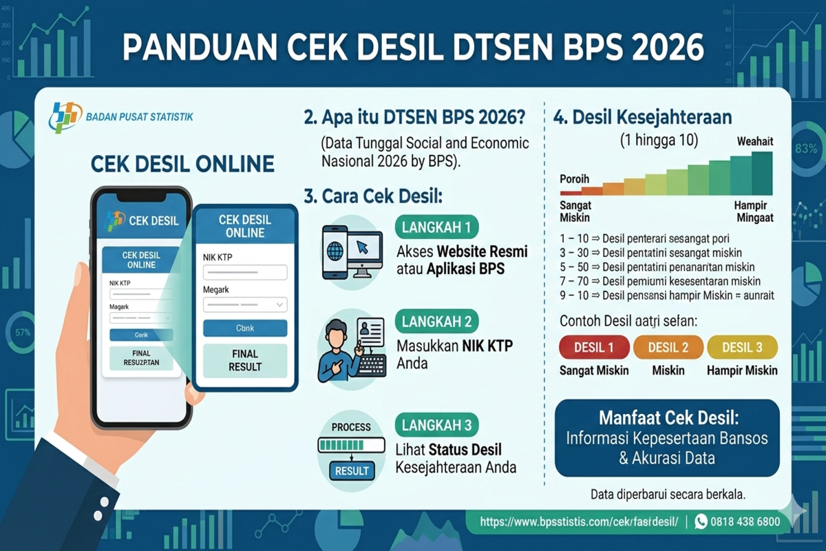 Cek Desil DTSEN BPS 2026 bukan sekadar melihat angka kategori ekonomi, tetapi memahami bagaimana sistem pemerintah menilai kondisi kesejahteraan keluarga. Desil menjadi fondasi penyaringan bantuan sosial, sementara DTKS menentukan siapa yang benar-benar menerima pencairan.
