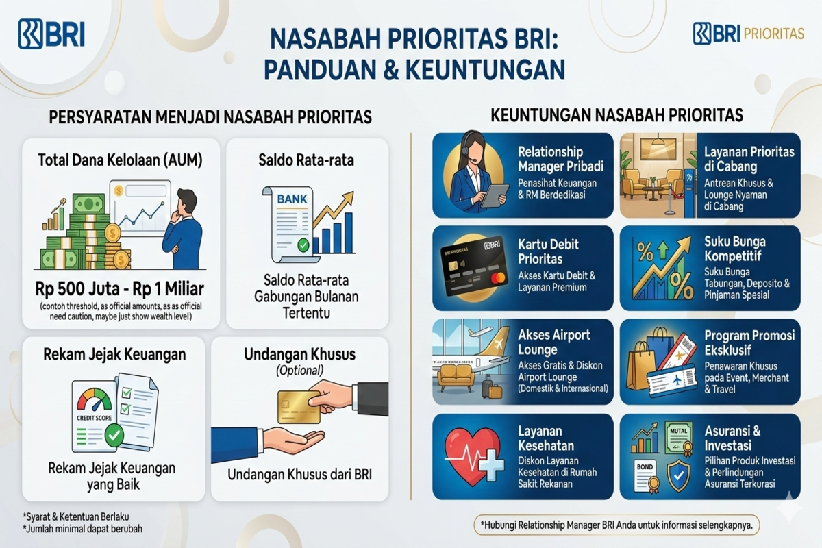 Program prioritas ini bukan sekadar status, melainkan paket layanan premium yang dirancang untuk nasabah dengan dana dan aset tertentu. Pertanyaan yang sering muncul adalah apa saja syarat jadi nasabah prioritas BRI dan apa saja keuntungannya bagi pengelolaan keuangan jangka panjang.