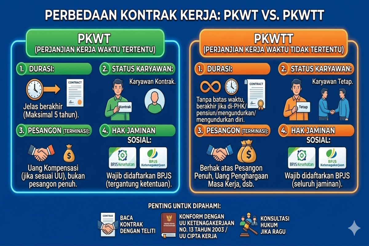 Dengan memahami perbedaan PKWT dan PKWTT, kamu dapat mengambil keputusan yang lebih tepat sebelum menerima pekerjaan.
