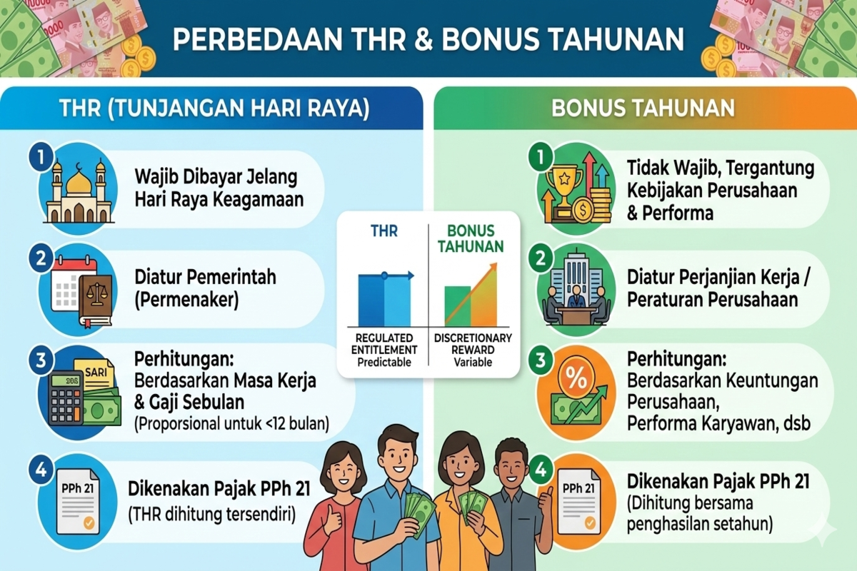 Memahami perbedaan THR dan bonus tahunan membantu karyawan mengetahui hak dan manfaat finansial yang mereka terima dari perusahaan.