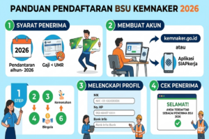Bansos Cara Daftar BSU Kemnaker 2026 Panduan Lengkap Syarat Penerima dan Cara Cek Status Bantuan Puspita Fariska March 10, 2026 Bidiknews.co.id-Banyak pekerja mulai mencari informasi tentang bantuan pemerintah yang kembali disalurkan setiap tahun. Salah satu program yang cukup dinanti adalah Bantuan Subsidi Upah atau BSU.