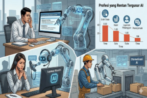 Berita Daftar Profesi yang Rentan Tergusur AI dan Profesi yang Diprediksi Tetap Dibutuhkan di Masa Depan Puspita Fariska April 5, 2026 Bidiknews.co.id-Pernah terpikir tidak, apakah pekerjaan yang kamu jalani saat ini masih akan ada lima atau sepuluh tahun ke depan? Pertanyaan seperti ini mulai sering muncul