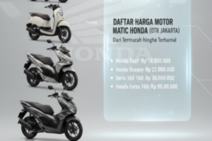 Berita Daftar Harga Motor Matic Honda Terbaru dari yang Paling Murah hingga Paling Mahal Lengkap dengan Spesifikasi dan Perbandingan Puspita Fariska February 21, 2026 Bidiknews.co.id-Motor matic masih jadi pilihan utama masyarakat Indonesia. Alasannya sederhana, praktis dipakai harian, irit bahan bakar, dan nyaman untuk segala usia. Tidak heran jika pencarian