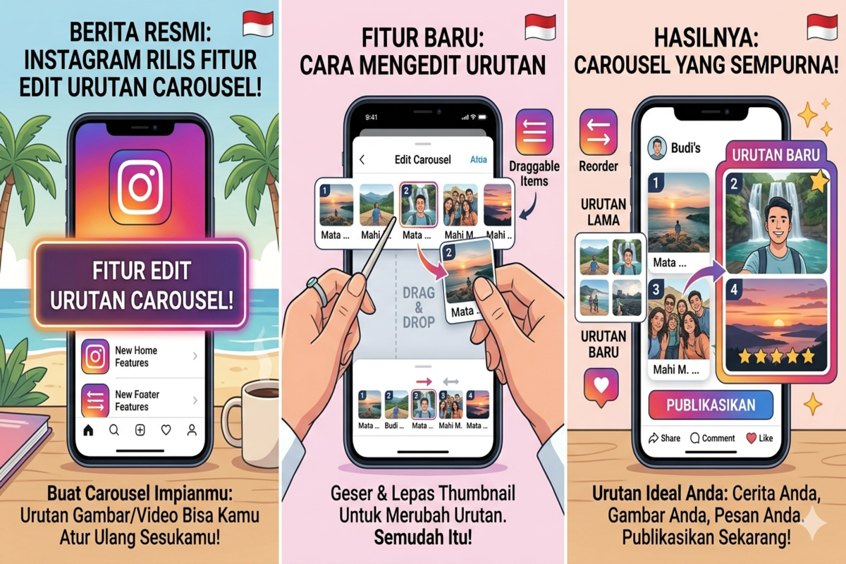 Fitur ini dikenal luas sebagai Instagram rilis fitur edit urutan carousel, dan langsung menjadi perhatian banyak kreator konten maupun pengguna biasa karena memberikan fleksibilitas yang sebelumnya tidak tersedia.